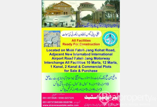 PECHS ISLAMABAD IS A DEVELOPED SOCIETY NEAR NEW ISLAMABAD AIR PORT LINKED WITH MOTORWAY MOTORWAY AND FATEH JANG ROAD . 20 MINUTES DRIVE FROM RAWALPINDI/ISLAMABAD . ALL FACILITIES GAS , ELECTRICITY , WATER , ROAD FOR CONSTRUCTION DIRECT NEAR ACCESS TO NEW AIRPORT. RESIDENTIAL PLOTS SIZE 150,200,300 ,,356 ,500, 600 , 1200 SQ YDS . BEST PLACE FOR LIVING AND INVESTMENT FOR SALE AND PURCHASE PLZ CONTACT Warrant Officer (R) GHAZANFAR ALI