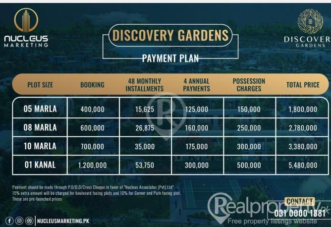 Exclusive Luxury Collection of Residential and Commercial Plots. A Project by Falak Naz Group 10 Min From Airport 10 Min From CPEC 3 Min From Ring Road RWP The Project consists of 5 Marla, 8 Marla, 10 Marla and 1 Kanal Plots on One Year Easy Installments Plan Booking Starts from 04 Lac only 5 Star Hotel Water and Theme Park Jungle Safari Riding Club Botanical Gardens Grand Mosque Water Resource Reserve Mini Golf Medical Community Education Community Two Beautiful Lakes