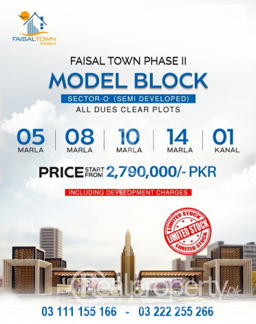 Faisal town Sector O (Model Block) 5 Marla all dues clear plot for sale Total price 27.90 book now