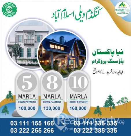 kingdom Valley 5, 8, 10 Marla 1 kanal plot for sale. Kingdom Valley General Block 10 Marla Plot Total Price 21 lac Down Payment 210000 remaining payment will be paid in 4 years monthly instalments. ideal location NOC approved society very reasonable price . development work in sully swings on site. Contact us for Booking more info. . Kingdom valley +923111155166 +923222255266 Office Location; Blue Area Islamabad