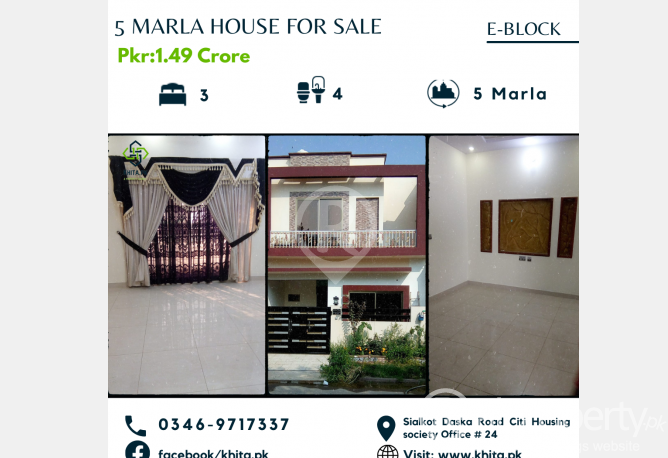 Beautiful 5 Marla House For Sale In Citi Housing Society Sialkot 3 Bedrooms 4 Bathrooms 1 Tv lounge 1 Store Room 1 Garage For More Details Contact Us 03469717337 or Visit RN Realestate Office 24 commercial A block