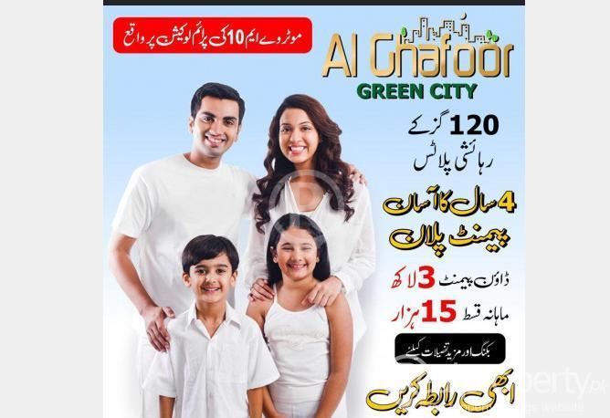 Al ghafoor green city Moter way 10 Main northern by pass 5 mint drive from Gulsha maymar 200 feets road Main 2 entrance gate Park, hospital, school, farm house, public community building, boundry wall society, mosques, Prime Location