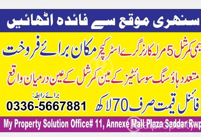 کیا آپ پراپرٹی کنسلٹنٹ ہیں اور پراپرٹی آفس کے ساتھ رہائش کے لیے بہترین جگہ تلاش کر رہے ہیں ۔ 5 مرلہ نیم کمرشل کارنر گرے سٹرکچر مکان برائے فروخت اپنا وقت ضائع نہ کریں بس آج ہی بہترین پراپرٹی کی جگہ آئیں مین گرجا روڈ سے پہلی مین اسٹریٹ نیچے دی گئی قریبی ہاؤسنگ سوسائٹیز اپ کنٹری انکلوزر، سی بی آر II، ایف او سی ایچ ایس، سلور سٹی اور اسٹار مارکیٹنگ ماربل آرچ ہاؤسنگ سوسائٹی ڈیمانڈ 70 لاکھ رابطے کے لیے My Property Solution آفس نمبر 11 انیکسی مال پلازہ صدر راولپنڈی 0336-5667881